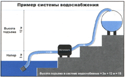 Производительность определяется величиной напора в метрах и сложностью